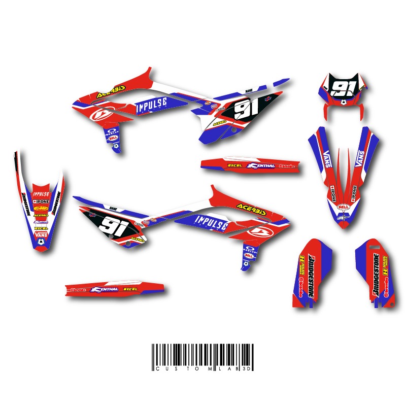 With Eleven MX stickers configurator, you can see the rendering of your custom mx graphics kit on your motocross. Available on phone, tablet and computer, it's very easy and quick to creat a custom graphics kit.