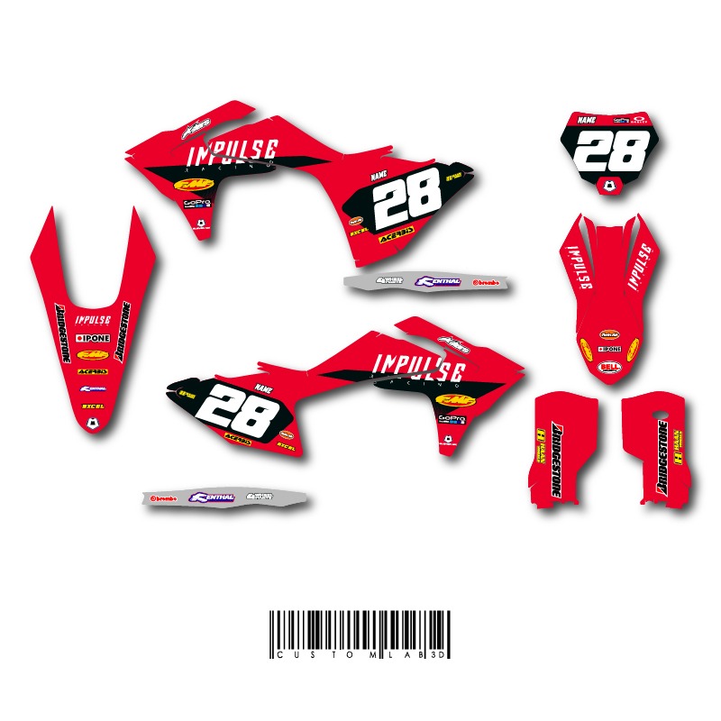 Grazie al configuratore di adesivi ELEVEN MX, puoi vedere direttamente come apparirà il tuo grafiche personalizzati sulla tua moto da cross.